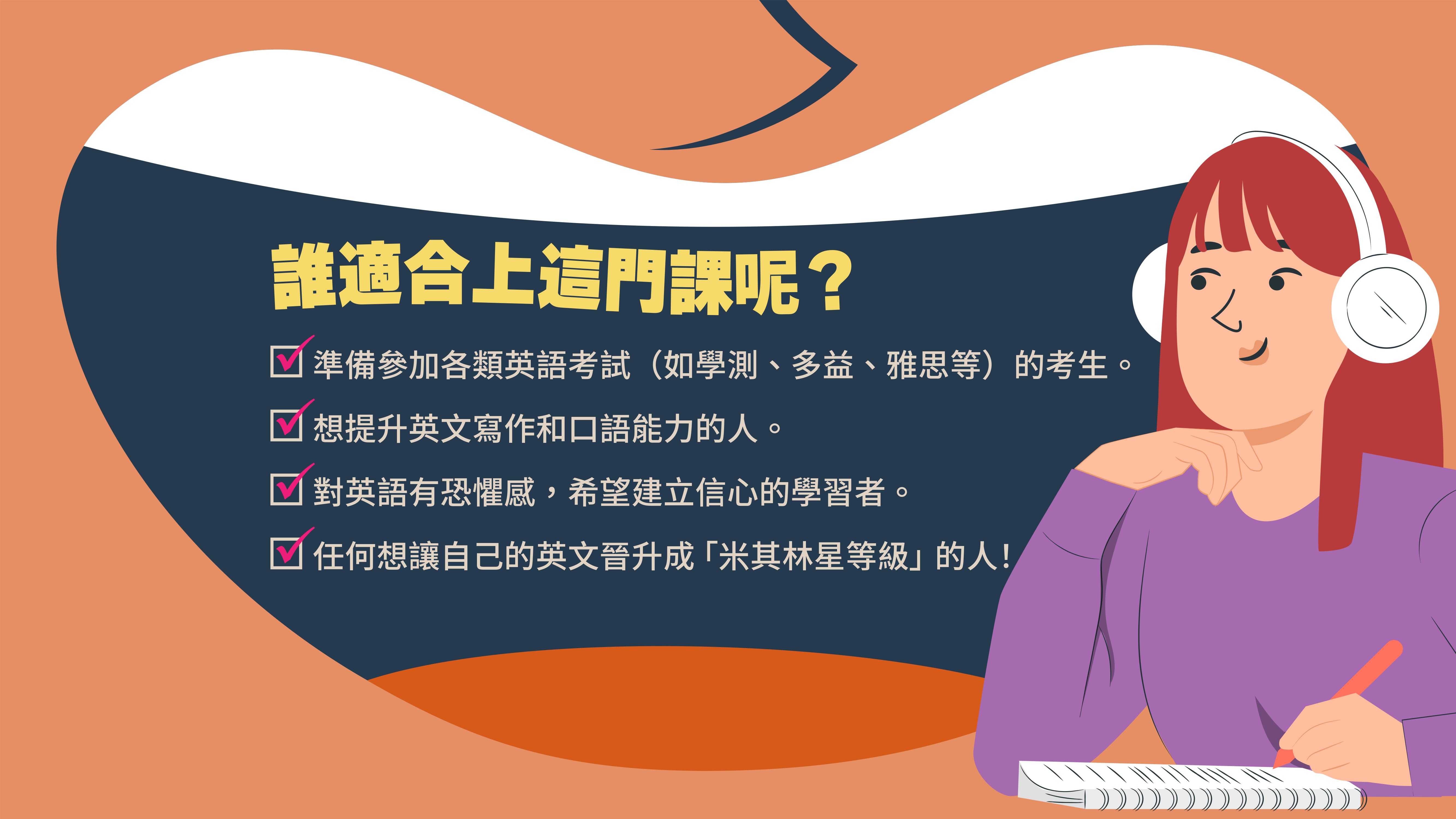 1. 準備參加各類英語考試 (如:學測、多益、雅思) 的考生