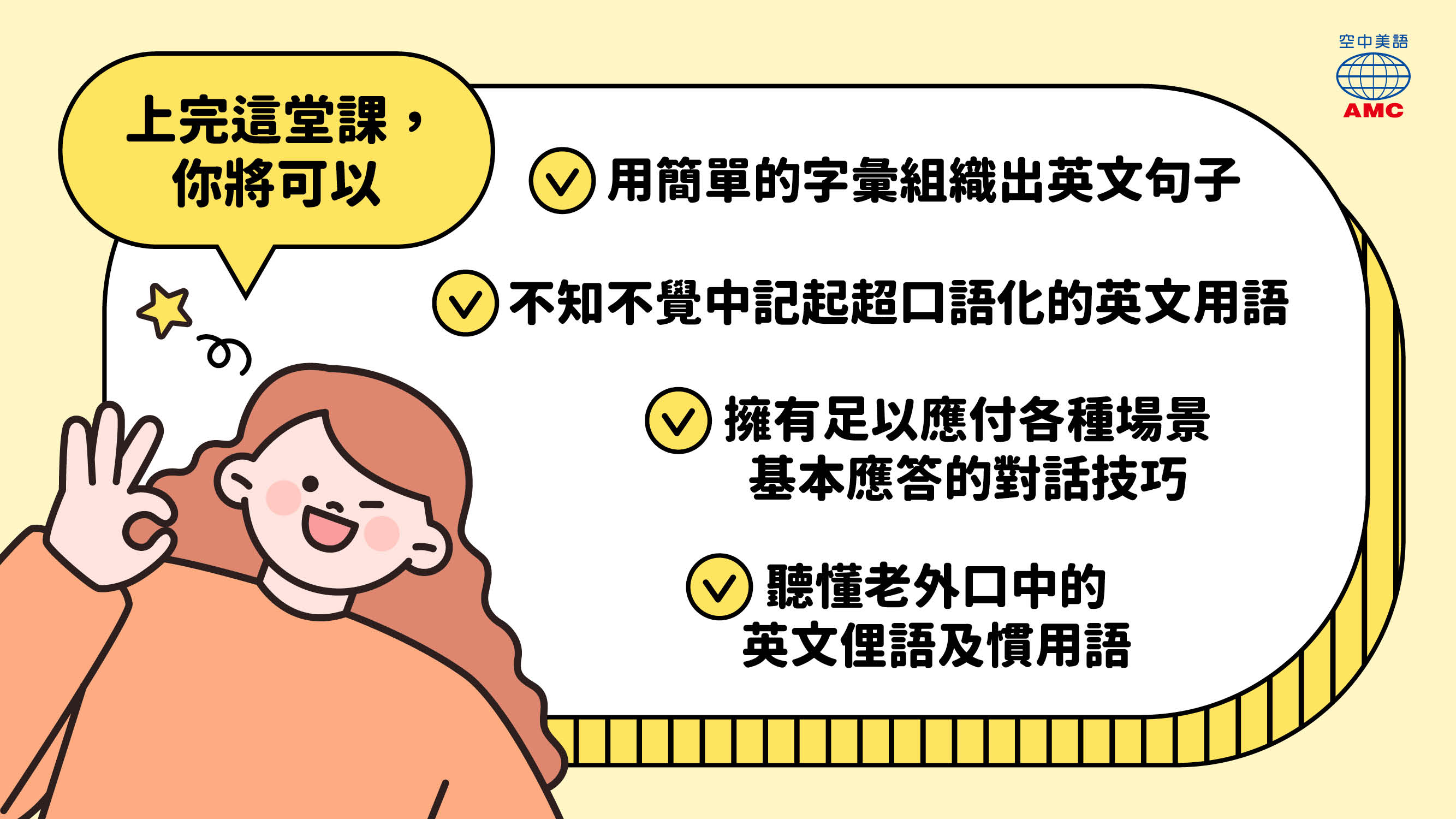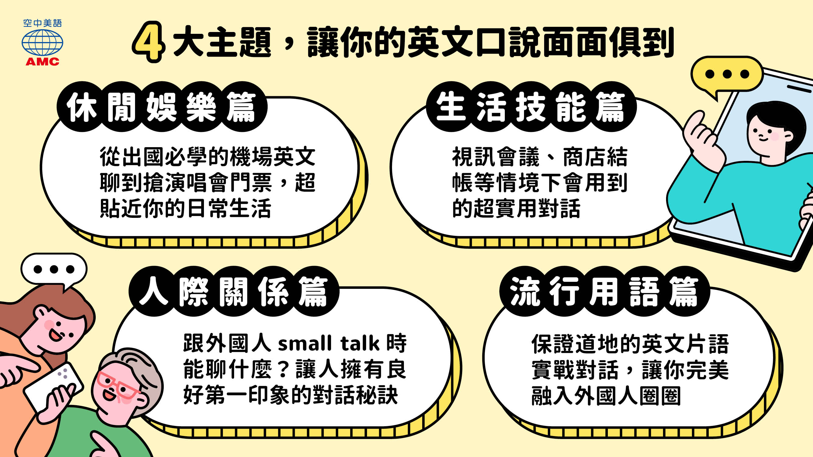 空中美語文教事業股份有限公司(以下簡稱「AMC」)係依據本服務條款提供AMC上課吧(https://amcbar.english4u.com.tw/)服務 (以下簡稱「本服務」)。當您使用本服務時,即表示您已閱讀、瞭解並同意接受本約定書之所有內容。本公司有權於任何時間修改或變更本約定書之內容,建議您隨時注意該等修改或變更。您於任何修改或變更後繼續使用本服務,視為您已閱讀、瞭解並同意接受該等修改或變更。如果您不同意本約定書的內容,或者您所屬的國家或地域排除本約定書內容之全部或一部份時,您應立即停止使用本服務。若您為未滿十八歲,除應符合上述規定外,並應於您的家長(或監護人)閱讀、瞭解並同意本約定書之所有內容及其後修改變更後,方得使用或繼續使用本服務。當您使用或繼續使用本服務時,即表示您的家長(或監護人)已閱讀、瞭解並同意接受本約定書之所有內容及其後修改變更。